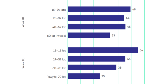 Powyższa infografika pochodzi z badania przeprowadzonego na potrzeby Biblioteki Narodowej o nazwie: Stan Czytelnictwa w Polsce na rok 2024. Na jego podstawie dostrzegamy, że po powieści częściej sięgają młodsze osoby niż starsze.